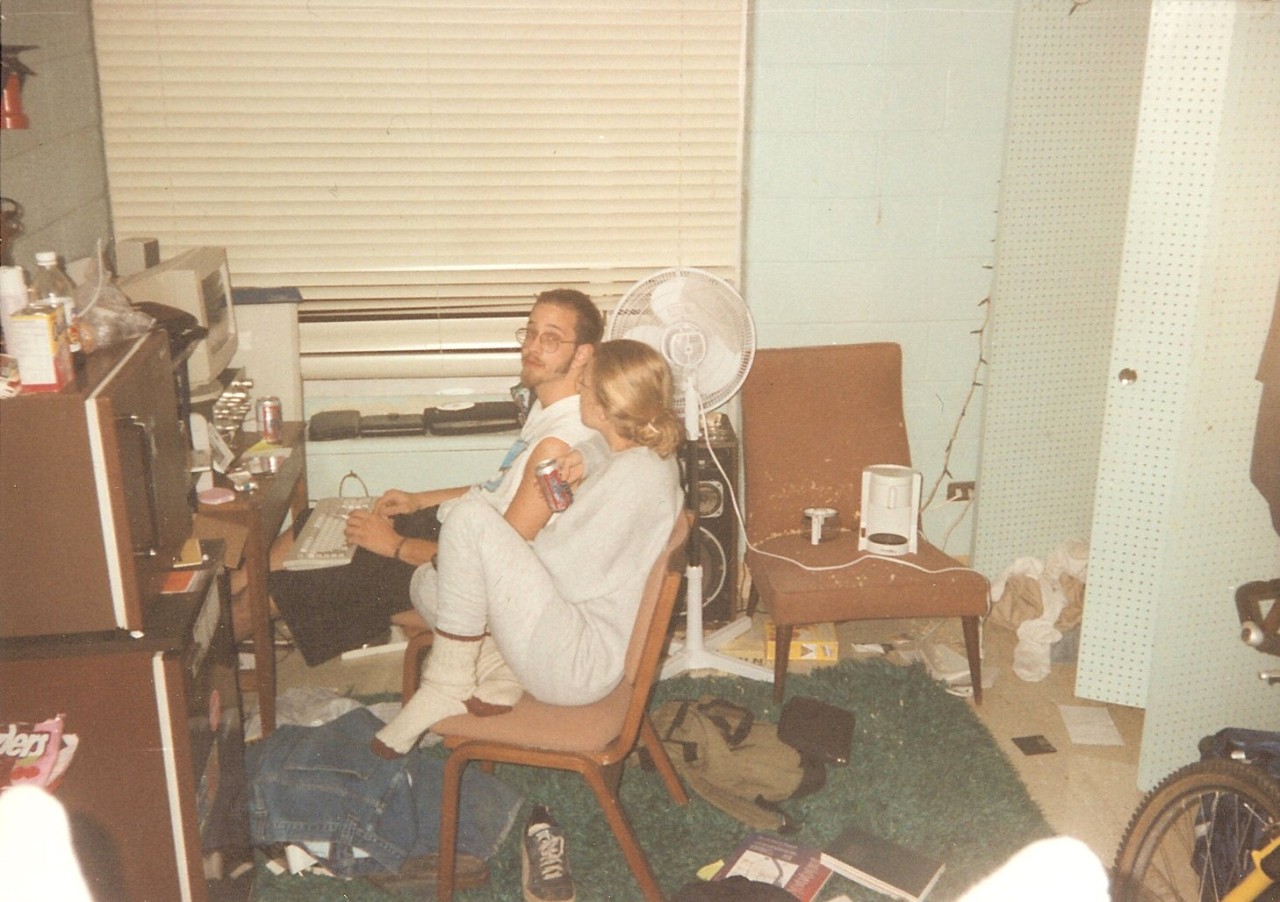Nathan and Jennifer in my/Nathan's door room. Notice how neat and clean we kept it. Nathan is using my P-120mhz PC.